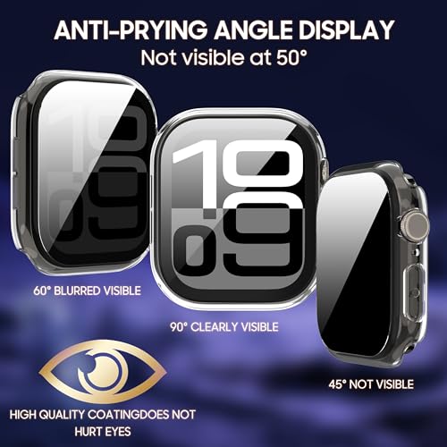 AIDOWU - 3-Pack Privacy Case for Apple Watch Series 10/11 42mm, [Anti-Peeping] Ultra-Thin Tempered Glass Screen Protector Case Cover for iWatch Series 10/11 42mm,Transparent*3