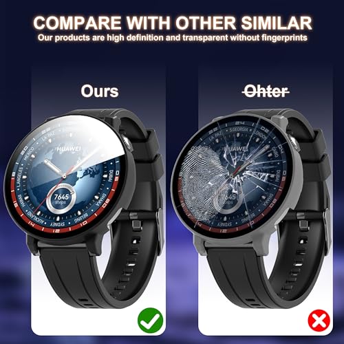 - High quality materials: Our Huawei Watch GT 5 46mm protective case is made of a 9H hardness tempered glass screen protector and a case made of high-quality PC material, ensuring excellent scratch resistance and exceptional durability. (Includes: You will receive 3 protective cases)