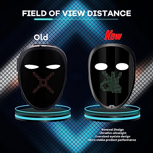 - [Led Programmable Face Mask] Take your mask experience to the next level!Unleash your creativity with this programmable led mask connects via Bluetooth to an easy-to-use Phone app,You Can add photos or DIY scrolling text on this Halloween led mask. If you play the music in the app or talk to the led mask(turn on microphone on the app), the volume EQ will be coolly showed on the face mask.This is one of the coolest Halloween gifts.