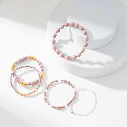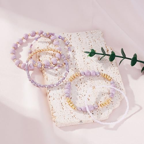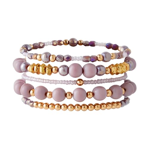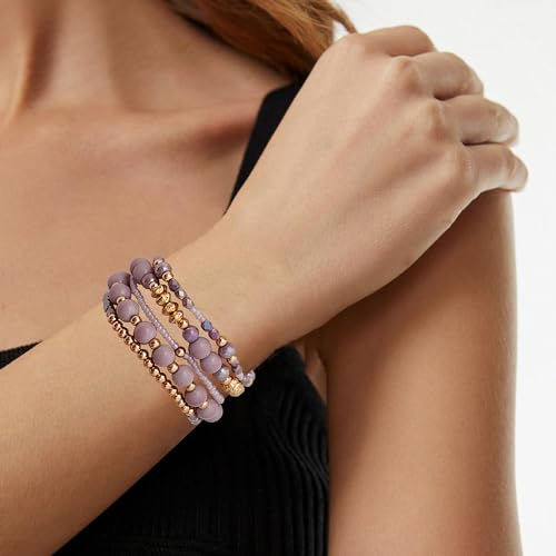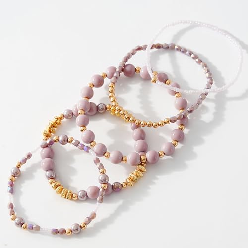 Aigrnc - Boho Beaded Stretch Bracelets For Women Stackable Crystal Gold Plated Beaded Bracelets Set Trendy Handmade Friendship Braeclet Jewelry Gifts