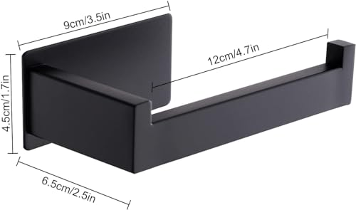 - Wide compatibility: high-quality self-adhesive toilet roll holder with clean lines, ideal for bedroom, bathroom and toilet, suitable for tiles, wood, plastic and glass. The L-shaped design of the toilet paper holder ensures that the toilet paper can be smoothly rotated away from the wall. The hooks on the back effectively prevent the paper from slipping.