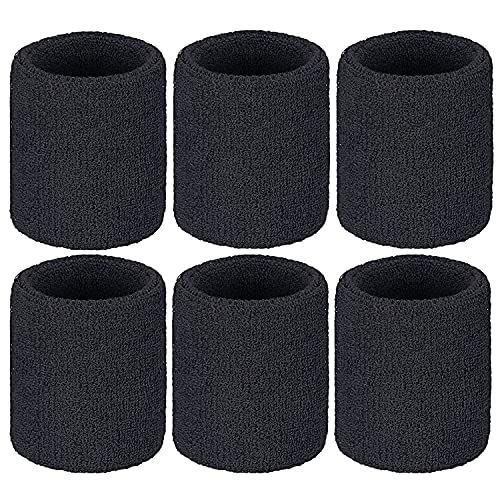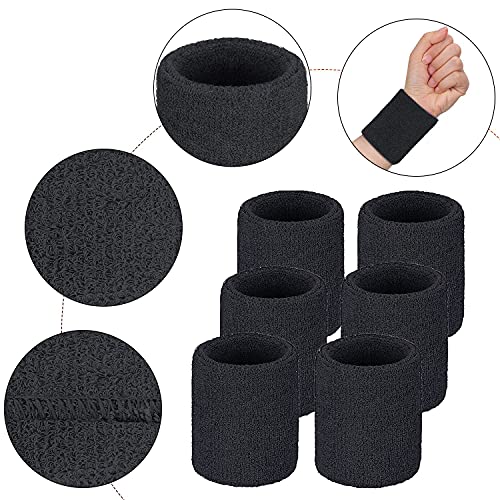 Ailiver - Wristbands Sweatbands Wrist Men Women 6PCS Sports Sweat Bands Absorbent for Gym Sports Tennis Running Exercise Basketball Moisture Wicking (Black,Size: 3.15 x 3.94 inches)