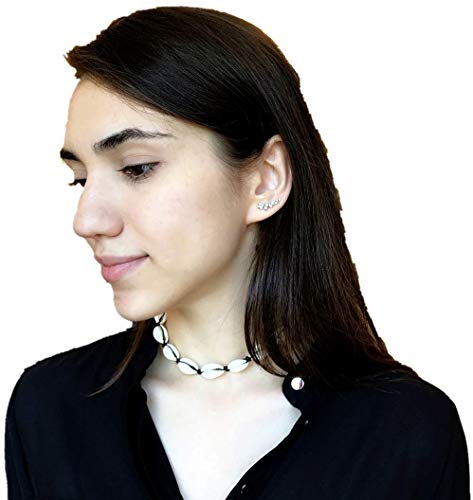 Aillzako - قلادة شوكر مصنوعة يدويا للصيف والشاطئ من حبل مخملي ابيض ايلزاكو للنساء بنات