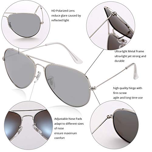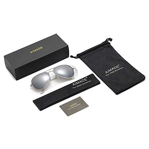 AIMADE - AIMADE Premium Military Polarized Aviator Sunglasses Metal Frame Brand Unique Design Sun glasses For Mens Womens 100% UV Protection, 352-silver Silver,