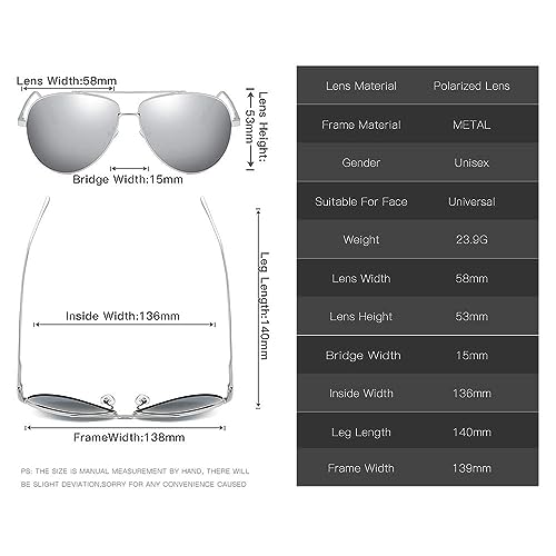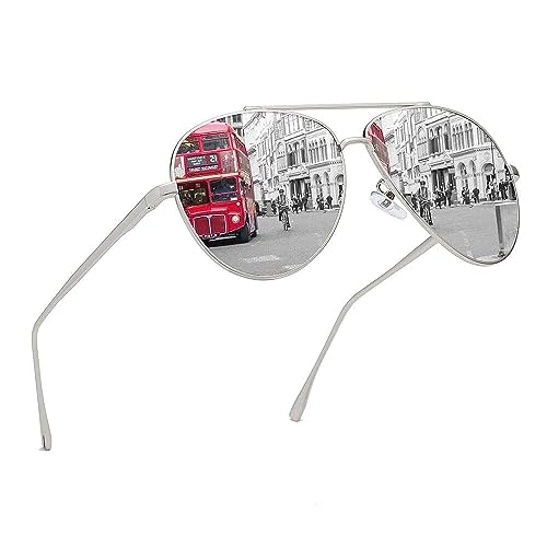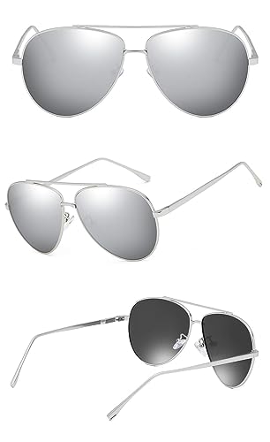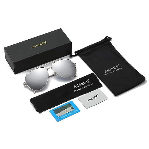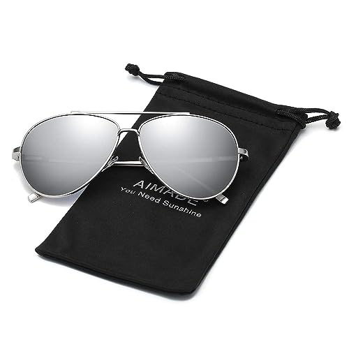 AIMADE - ايميد نظارة شمسية افياتور بعدسات مستقطبة ممتازة باطار Lens Width: 58 معدني بتصميم فريد للرجال والنساء، حماية من الاشعة فوق البنفسجية بنسبة 100%, إطار فضي, عدسة فضية