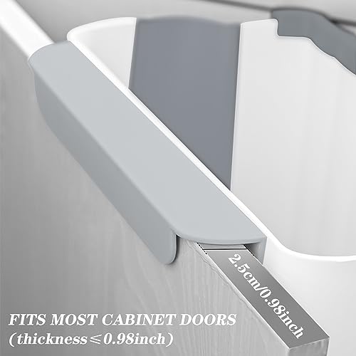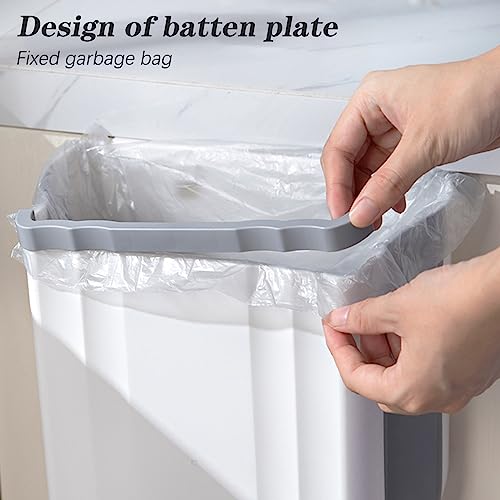 - 【Kitchen Essentials】 Installing our hanging trash cans is a breeze; no additional tools are required. Simply fix the hook on the back of the trash can, place the trash bag inside, and secure it with the pressure ring. Then, you can easily install it on any cabinet drawer or door. (Please ensure the door thickness is less than 0.78in/2cm before purchasing!)