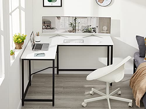 Aingoo - Aingoo Corner Desk L Shaped Desk Sturdy Home Office PC Laptop Workstation Gaming Computer Desk Study Writing Table 128 * 108 * 75CM Easy to Assemble, White
