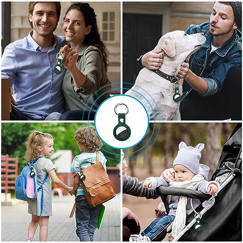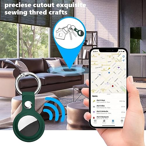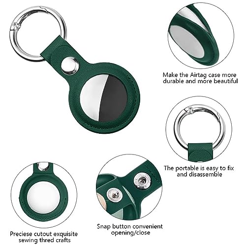 Ainiv - Ainiv Protective Case for Apple Airtags, Green PU Leather Keyring Case, Airtag Holder, Pet Dog Cat Collar Tracker, AirTags Key Finder, Locator Tracker