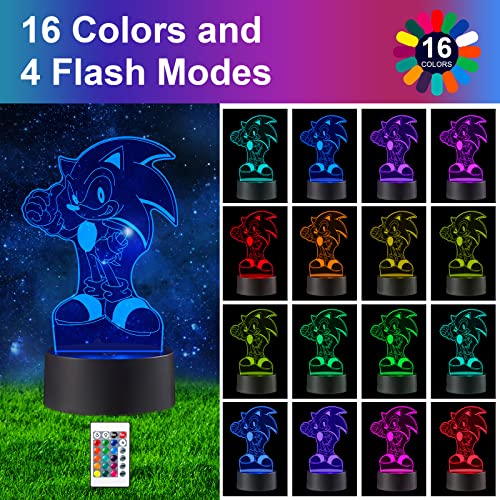 Ainvliya - Night Light Kids, 3D Illusion Led Table Bedside Anime Lamp, Touch Lamp with 16 Colors Change and Remote Control for Bedroom Decoration, Birthday Gifts for Boys Girls