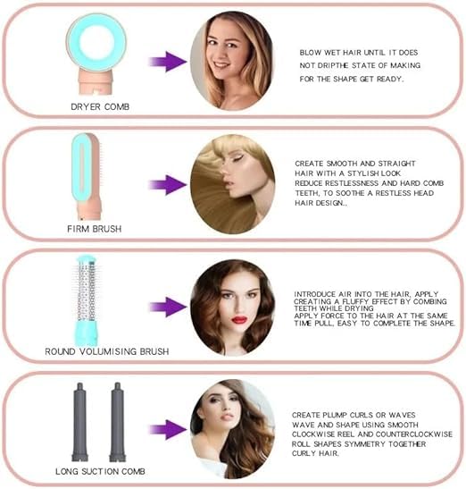 - All-In-One Hot Air Brush Power: Cut morning stress with a 5 in 1 hair dryer brush that dries, smooths, curls, and adds volume in minutes — perfect for quick school runs, office days, or an engagement night.