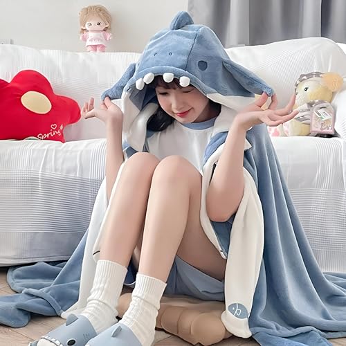 Generic - Air-Conditioning Blanket Nap Robe - Adults' Shark Hoodie Shawl, Ultra-Soft Wearable Blanket for Cozy Lounging, Sleeping, and Relaxation in Comfort