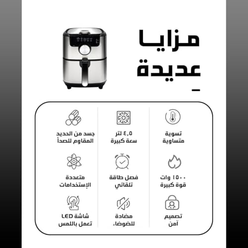 - Family-Size 4.5 L Basket: Cook for 3–5 people in one round—perfect for koshary sides, frozen snacks or a full dinner without heating the big oven.