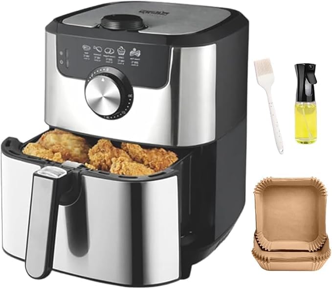 Generic - Air Fryer 4.5 L Stainless Steel 1500 W Oil-Less Fryer with Fast Air Circulation, Dishwasher-Safe Basket and 3-Piece Accessories Set, KB-2085