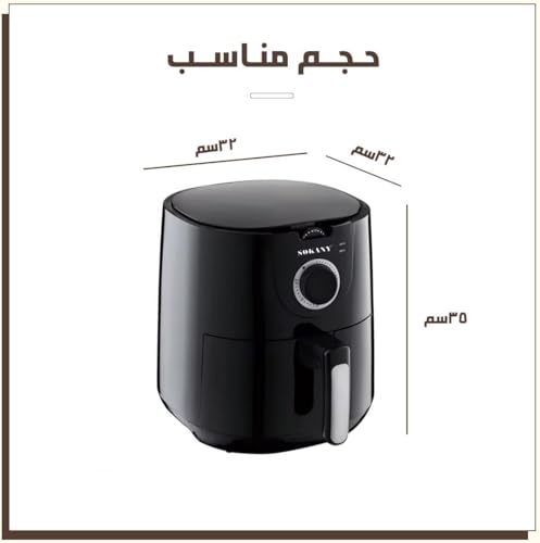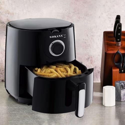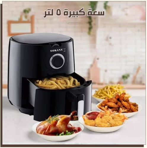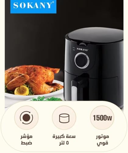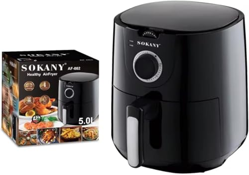 Sokany - مقلاة هوائية 5 لتر، 1500 وات، فرن حراري رقمي للطهي بدون زيت بدرجة حرارة قابلة للتعديل وقاعدة مانعة للانزلاق مع سلة سهلة التنظيف بحماية من الحرارة الزائدة لتحضير طعام صحي (أسود، AF-002)