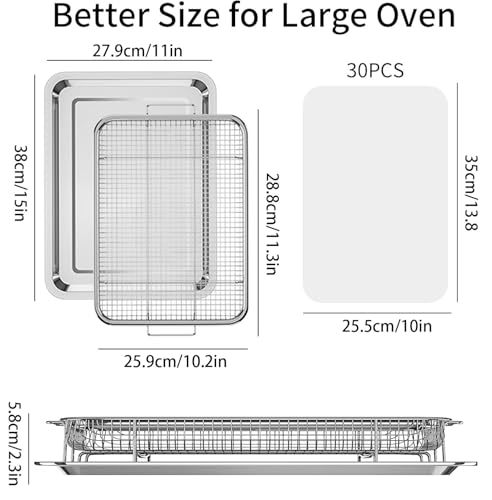OPENICE - سلة مقلاة هوائية للفرن من اوبنيس، سلة ومقلاة كبيرة مقاس 15.6 انش × 11.6 انش مع 30 قطعة من ورق البرشمان، سلة مقلاة هوائية للفرن من الستانلس ستيل وصينية للخبز والشواء