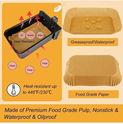 - Convenient: 100 parchment paper squares ideal for lining air fryers, ovens, and microwaves.