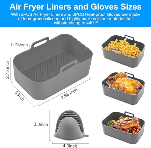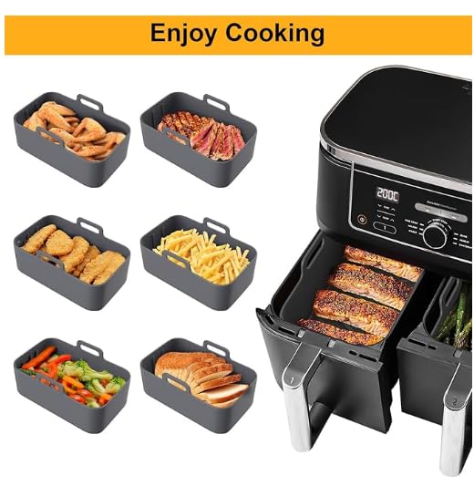Dollar for Import - Air Fryer Silicone Pot, Grey, 19.5 x 12.5 x 7 cm, Heat Resistant, with Handles, Non-Stick, Dishwasher Safe by Dollar for Houseware Import
