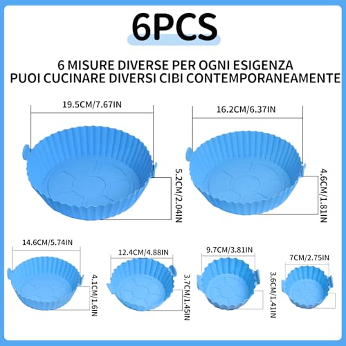 Supecesorio - Air Fryer Various Sizes, Set of 6 Silicone Baking Trays, Silicone Air Fryer Trays, Air Fryer Container for Steam Cookers, Frying Pans