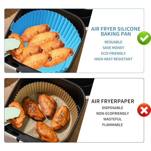 - PRACTICAL DESIGN: The air fryer baking dish can effectively protect the inner wall of the air fryer, prevent the adhesion of food residues and extend the service life of the air fryer. The silicone air fryer pans will not stick food, no need to use butter or oil, and you do not encounter the problem of food adhesion.