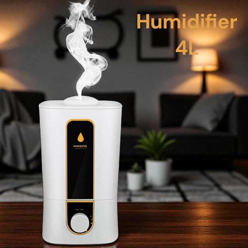 - 4L capacity tank for all day use:Humidifier contains at least 4 liters of water enough for more than 40 hours of working time; It is able to humidify the air in rooms up to 10-30 square feet / 107-322 square feet such as bedroom,living room,nursery, office etc.