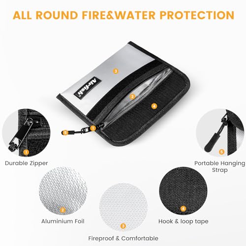 - محفظة أموال مضادة للحريق - مصنوعة من مادة مطورة من 3 طبقات مثبطة للهب يمكنها تحمل درجات حرارة تصل إلى 2871 درجة مئوية، ومعتمدة بمعيار (UL94 VTM-0). تمنحك حماية فائقة لجواز سفرك وأموالك ومجوهراتك، وغيرها من المقتنيات الثمينة.