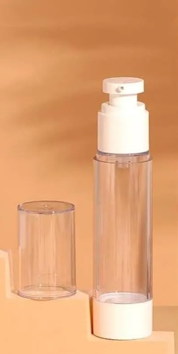 - Elegant airless pump bottle with a 30ml or 50ml capacity, perfect for storing and dispensing lotions, serums, creams, and other skincare products.