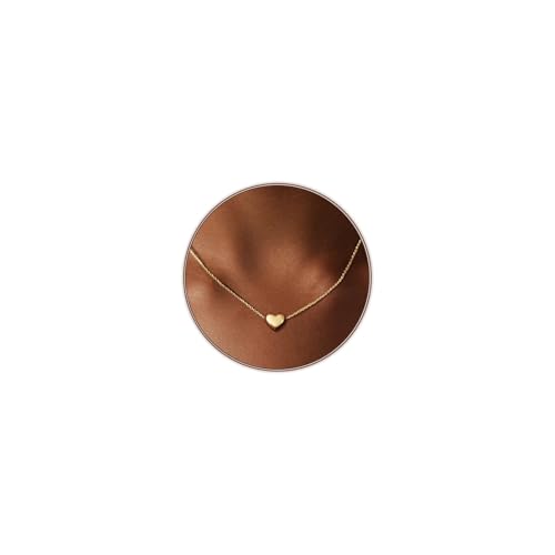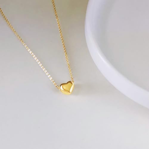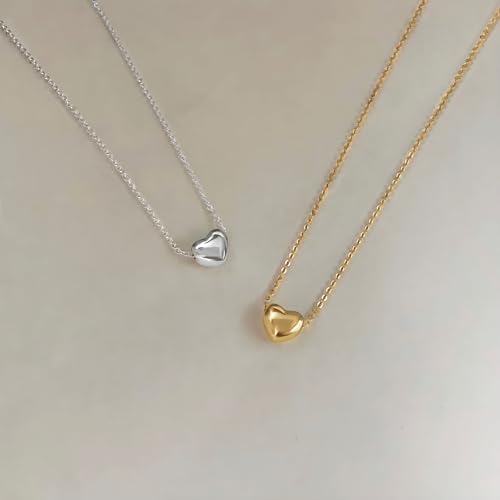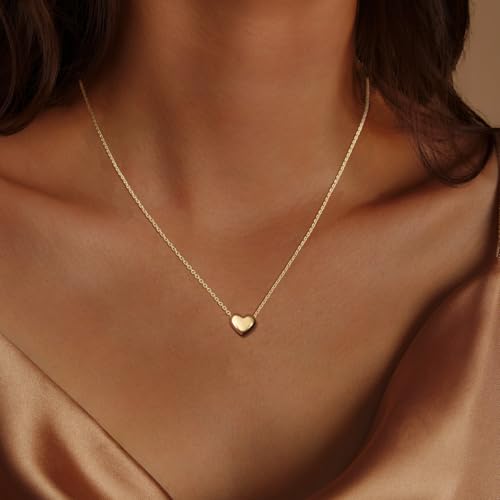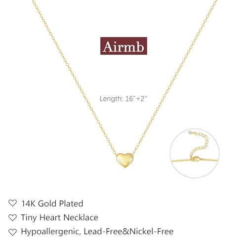 Airmb - Heart Necklace for Women 14K Gold Plated Tiny Puff Heart Chain Dainty Love Pendant Necklaces Cute Pendant for Women Trendy Jewelry Gift