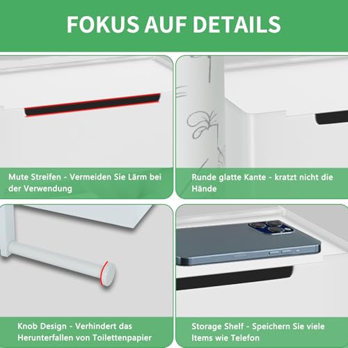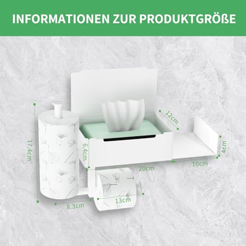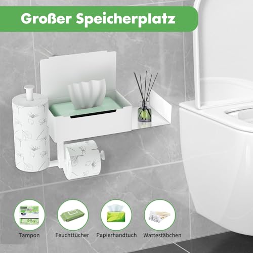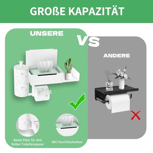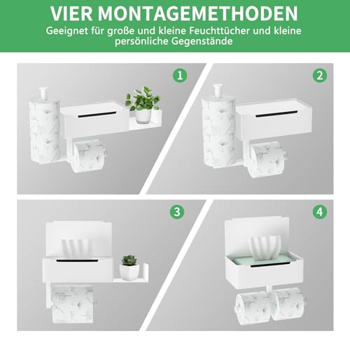 - Toilet paper holder with 2 shelves: Our multifunctional toilet paper holder, not only has two compartments, but also has a hidden wet tissue box, as well as a backup holder, which can be used as two rolls of paper. You can combine them according to your wishes. It can also help you store small items, mobile phones, spare rolls, small green plants, keys, watches, glasses, liquid soap, toilet cleaner, scented candles, and so on.