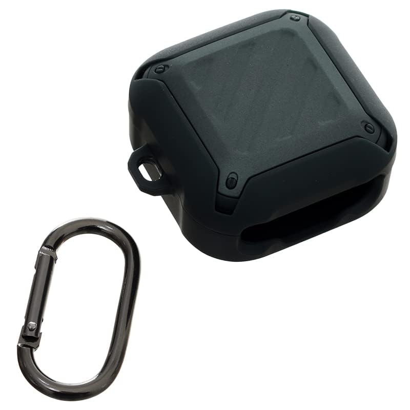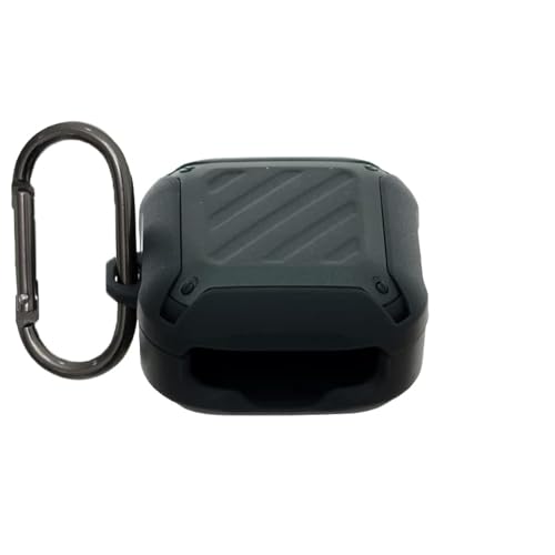 Airpod Case - جراب من السيليكون 2 في 1 بتصميم مربع بحافة مقاومة للصدمات مع حلقة تعليق معدنية لعلبة سماعات بودز لايف - لون زيتي، لسماعات ايربودز