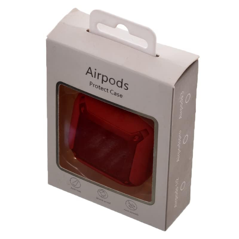 Airpod Case - 2 IN 1 Silicone Square Airpods Case With Shock Proof Edge And Metal Hanger For Buds Live - Red