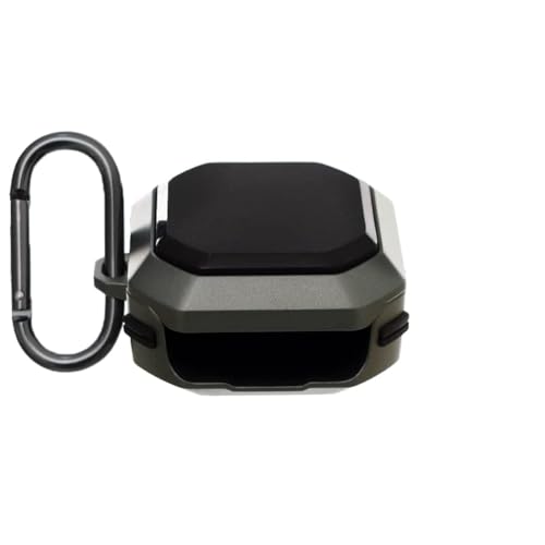 Airpod Case - Eggshell carbon square airpods case with shock proof edge and metal hanger for buds live - black green
