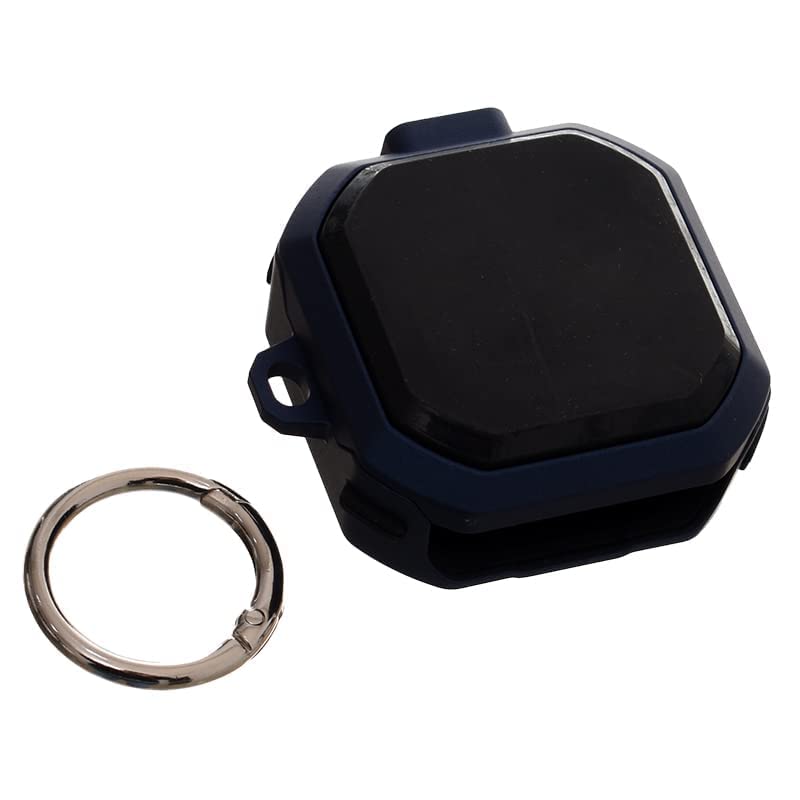 Airpod Case - حافظة حماية سيليكون بتصميم ايج شيل ونمط مربع بحافة مقاومة للصدمات وعلاقة معدن لسماعات ايربودز لايف/2/برو، لون أسود وكحلي