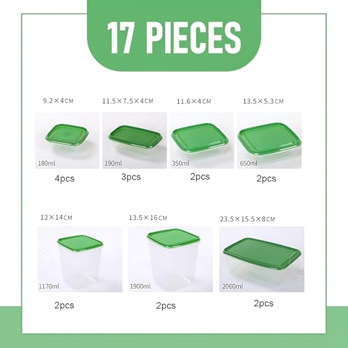 - تتضمن المجموعة 17 قطعة بمقاسات متعددة، تغطي كل شيء من علب الوجبات الصغيرة إلى العلب الكبيرة لبقايا الطعام، مصممة للحفاظ على النظام في الدولاب والثلاجة.