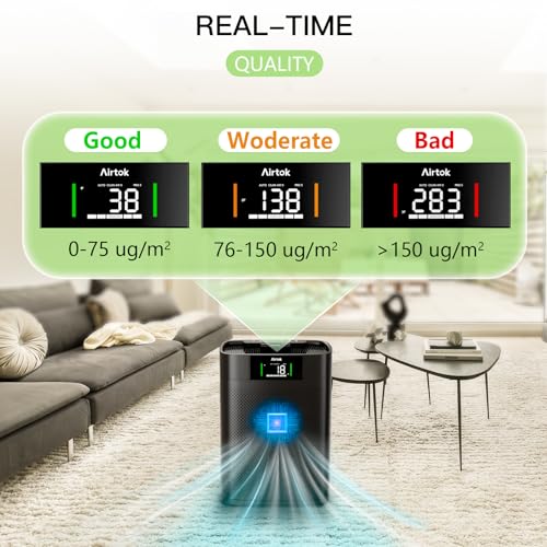 - SMART AIR PURIFIER: AIRTOK air purifier has a PM 2.5 Display & Air Quality Sensor which will monitor the air quality in real time and feed it back to the display screen.