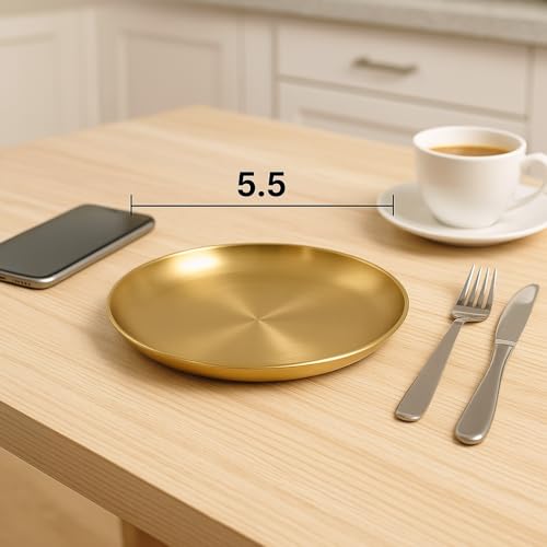 AIYoo - طقم اطباق عشاء دائرية من الستانلس ستيل اييو رائعة للنزهات والتخييم في الهواء الطلق مقاومة للكسر وامنة للاستخدام غسالة الاطباق - طقمين مقاس 14 سم- 5.5 بوصة فضي عدد القطع: 2