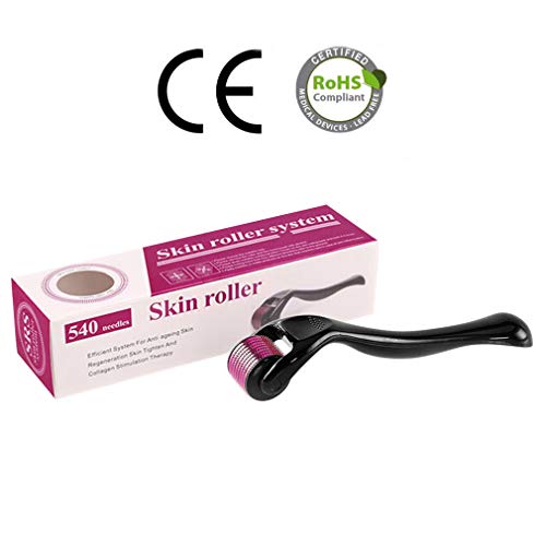 AIYUE - ديرما رولر بابر دقيقة من التيتانيوم 540 دبوس 05 ملم (5 مقاسات، للاختيار بينها) مع حافظة، للاستخدام التجاعيد وعلامات التمدد والحبوب وازالة الندوب، معتمدة سي اي ار او اس اتش، ايوي، متعدد الألوان.