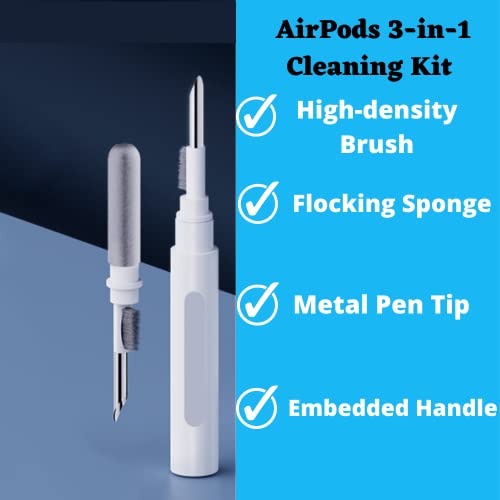 - {Separated Dual Head Design}: 3-in-1 earphone cleaning kit with Flocking Sponge, High-density Brush and Metal Pen Tip, dual head hidden design to meet a variety of cleaning needs