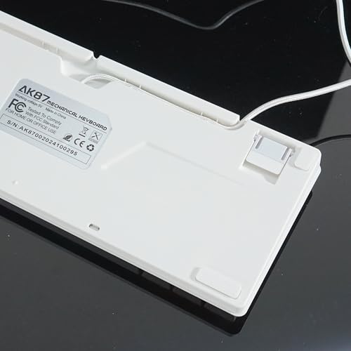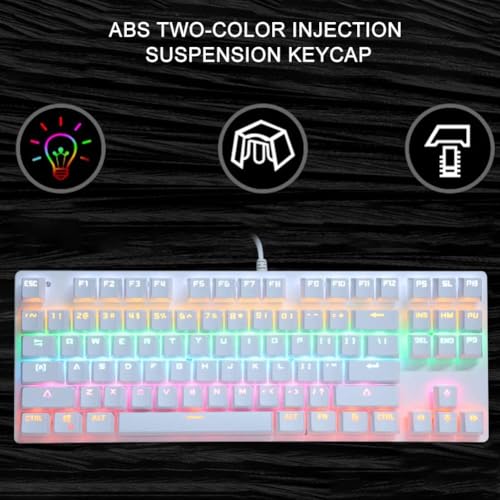 Generic - كيبورد ايه كيه87 بتوصيل USB موديل AK87 مع إضاءة RGB خلفية و مفاتيح هوت-سواب باللون الأبيض متوافق مع الكمبيوتر بتخطيط إنجليزي