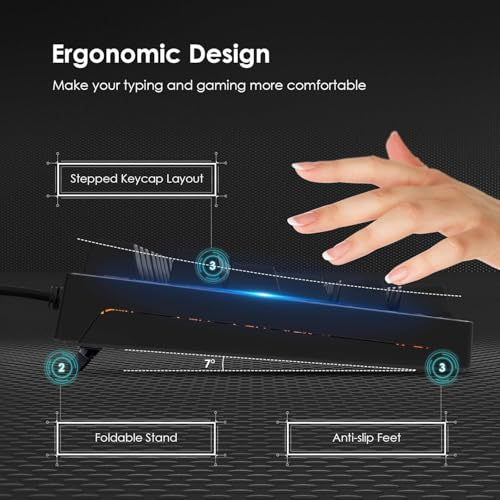 - ⌨【لوحة مفاتيح مع 12 مفتاحًا للوسائط المتعددة】12 مفتاحًا على لوحة المفاتيح مخصص للوسائط المتعددة. تم تصميم لوحات مفاتيح الألعاب الميكانيكية بشكل مريح ومقاوم للرذاذ مع حامل قابل للطي في الخلف، مما يوفر زاوية كتابة مريحة ويقلل بشكل فعال العبء على المعصم.