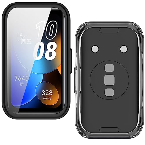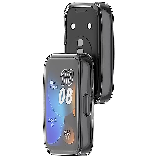 Akancy - [2 pieces] Compatible with Huawei Band 8, Protective Case Anti-Scratch Film Screen Protector in TPU Full Protection Case – Black Transparent