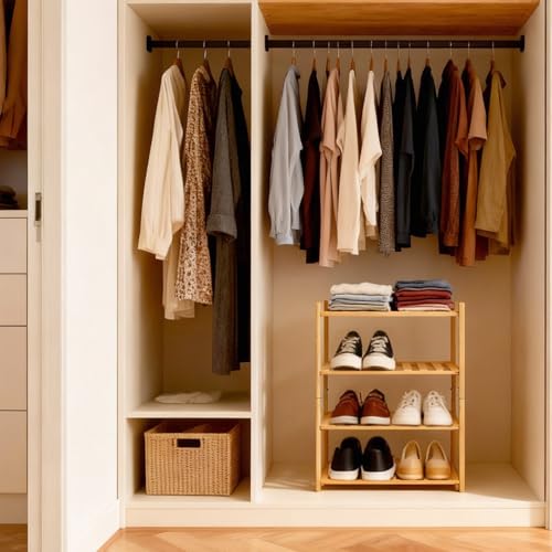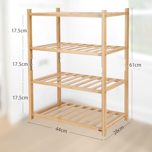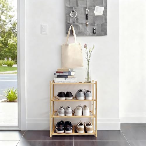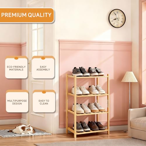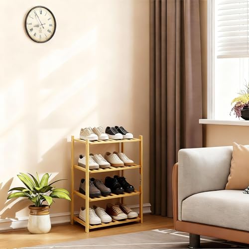 Akloya - Small Shoe Rack, Multipurpose 4 Tier Shoe Organizers Rack,Small Bamboo Shelfs for Shoes, Plants, Books, Living Room, Hallway Bedroom, Bathroom (4 Tier)