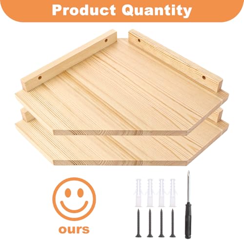 - محتويات الصندوق: تتضمن عبوتنا رفين سداسيين بطول 11.25 انش، 8 براغي و2 مفك براغي. رف تعليق الزاوية مناسب لأسطح الجدران المختلفة، مثل الجدران الجيرية وجدران الطوب والجدران الخشبية وما إلى ذلك.