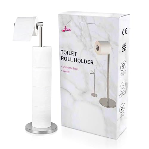 Akos - Akos Toilet Roll Holder Free Standing | Bathroom Accessory | Stainless Steel Toilet Paper Roll Stand | Storage Dispenser Holds 5 Paper Rolls on Toilet Roll Stand
