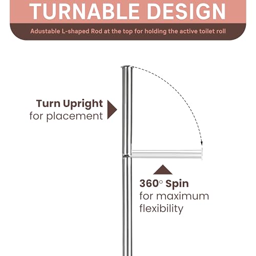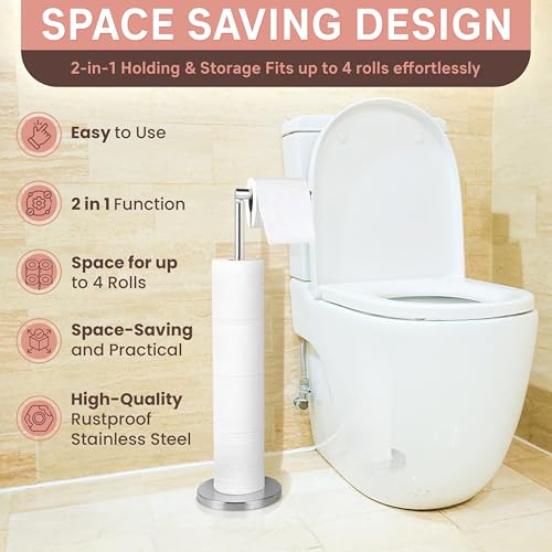 - Extra Capacity: Designed to hold up to five toilet rolls, with one on the L-shaped holder for immediate use and four in vertical storage, this free-standing toilet roll holder keeps your bathroom tidy and ensures rolls are within reach when needed.