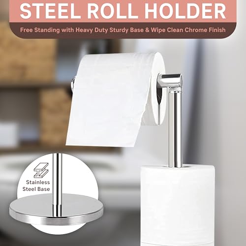 - Durable and Rust-Resistant: Made from high-quality stainless steel with a polished & waterproof finish, this toilet roll stand is built to last. Its rust-resistant design makes it the perfect bathroom toilet roll holder stand for humid environments.