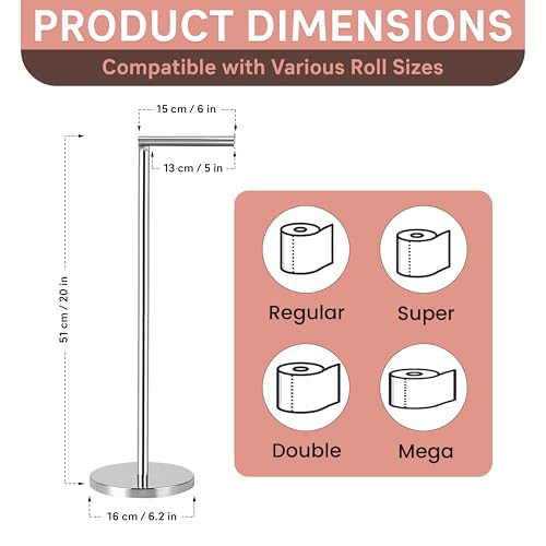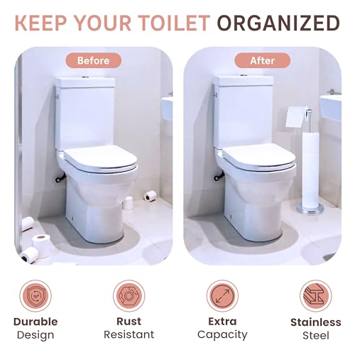 - Easy to Assemble: Quick and simple to assemble without tools, this free-standing toilet paper holder stand is easy to reposition whenever needed. Its flexibility makes it a convenient and practical solution for toilet roll storage in any bathroom.