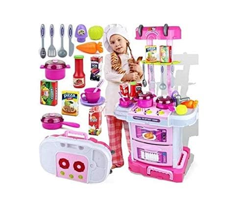 Akriti Enterprises - مجموعة ألعاب مطبخ 3 في 1 مع إضاءة وصوت للأطفال الصغار من اكريتي انتربرايزس، صندوق أكثر ملاءمة للحمل، 43 قطعة