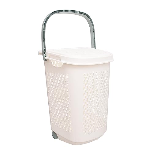 Aksa - Aksa Lundry Basket with Lid and Wheels - White Mint