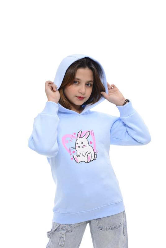 AKEEYO - AKY Printed Girls Hoodies Cotton Melton Baby Blue