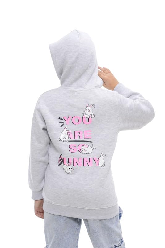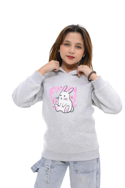 AKEEYO - سويت شيرت قطن ميلتون بغطاء للرأس مطبوع للبنات من ايه كيه واي، لون رمادي فاتح